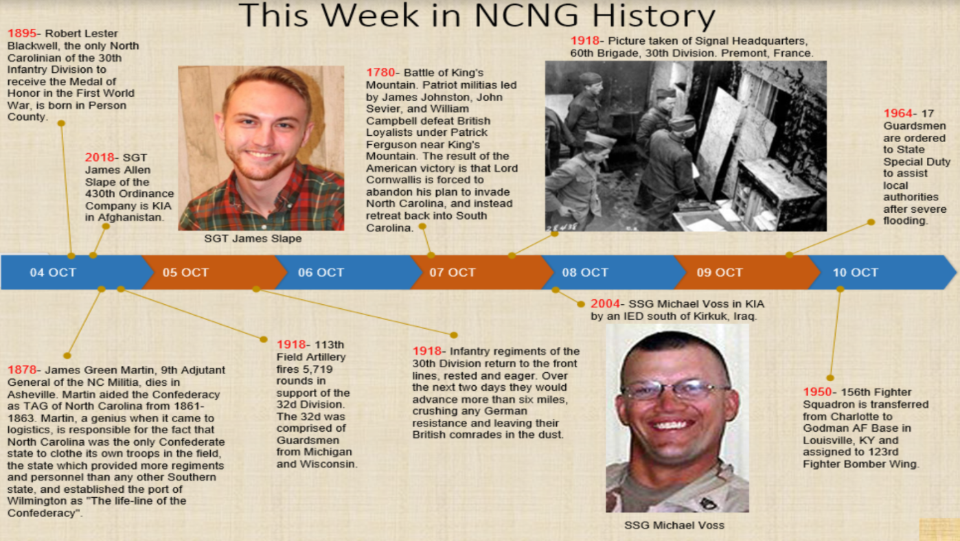 If you know of anything significant to the NCNG that occurred on any of these dates, and would like it added to our records, please email 1LT Dearie at kory.k.dearie.mil@mail.mil