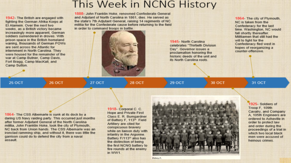 If you know of anything significant to the NCNG that occurred on any of these dates, and would like it added to our records, please email 1LT Dearie at kory.k.dearie.mil@mail.mil